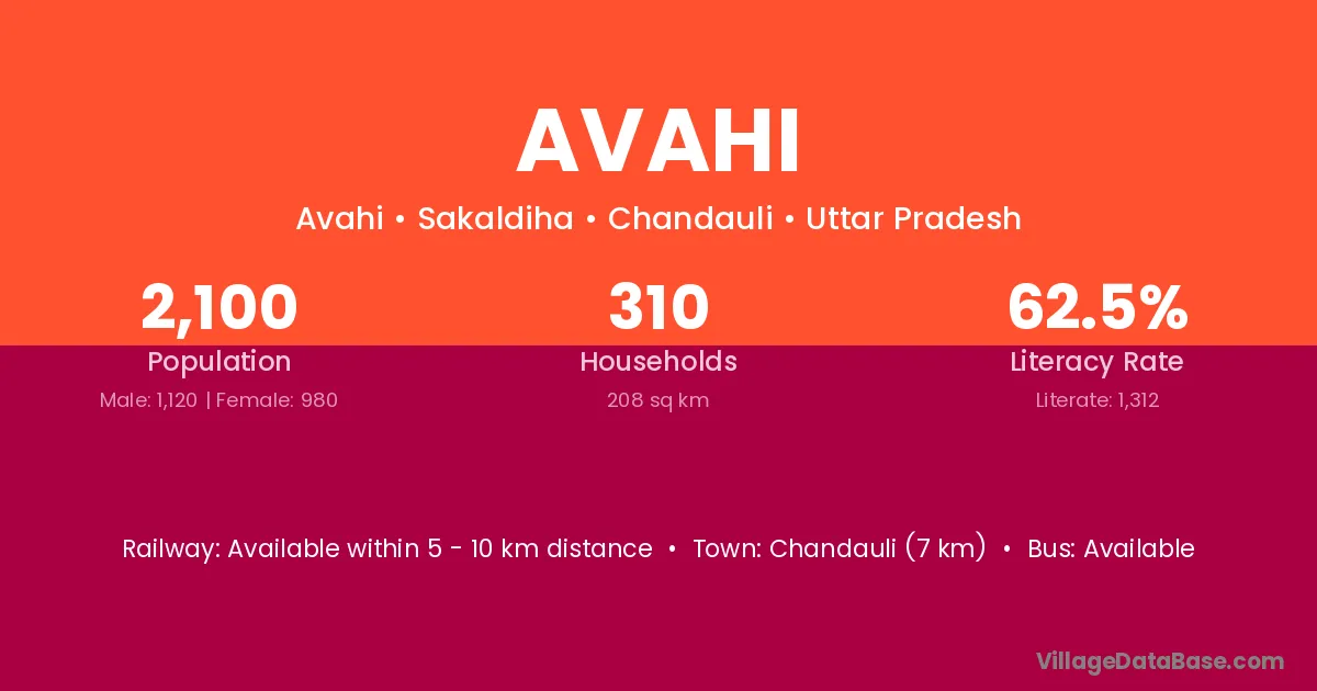 Chandauli (7 km) is the nearest town to Avahi village for major economic activities and is located approximately 7 km away.