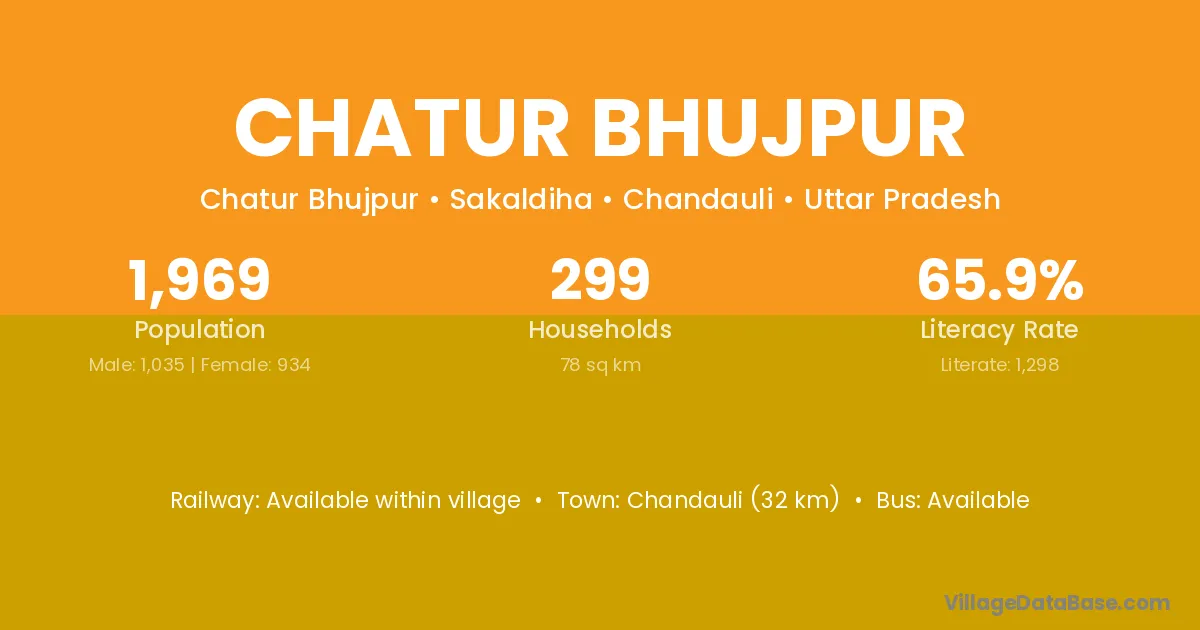 Chandauli (32 km) is the nearest town to Chatur Bhujpur village for major economic activities and is located approximately 32 km away.