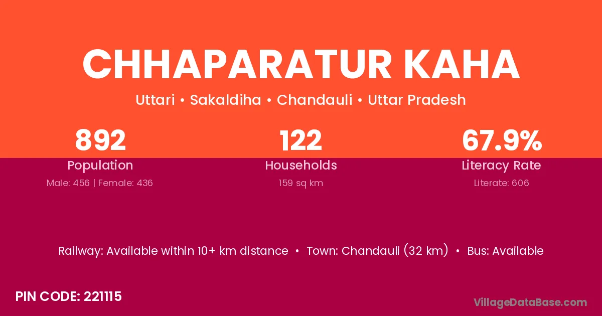 Chandauli (32 km) is the nearest town to Chhaparatur Kaha village for major economic activities and is located approximately 32 km away.