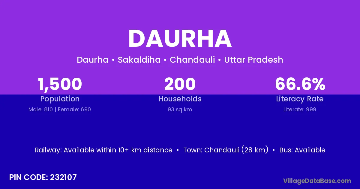 Chandauli (28 km) is the nearest town to Daurha village for major economic activities and is located approximately 28 km away.