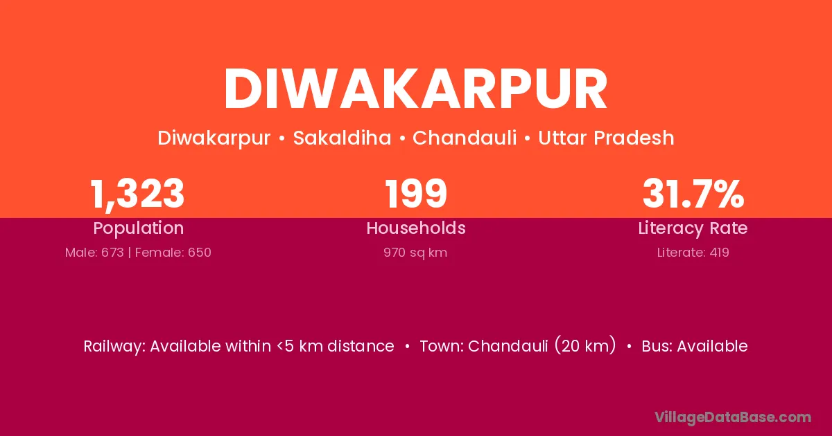 Chandauli (20 km) is the nearest town to Diwakarpur village for major economic activities and is located approximately 20 km away.