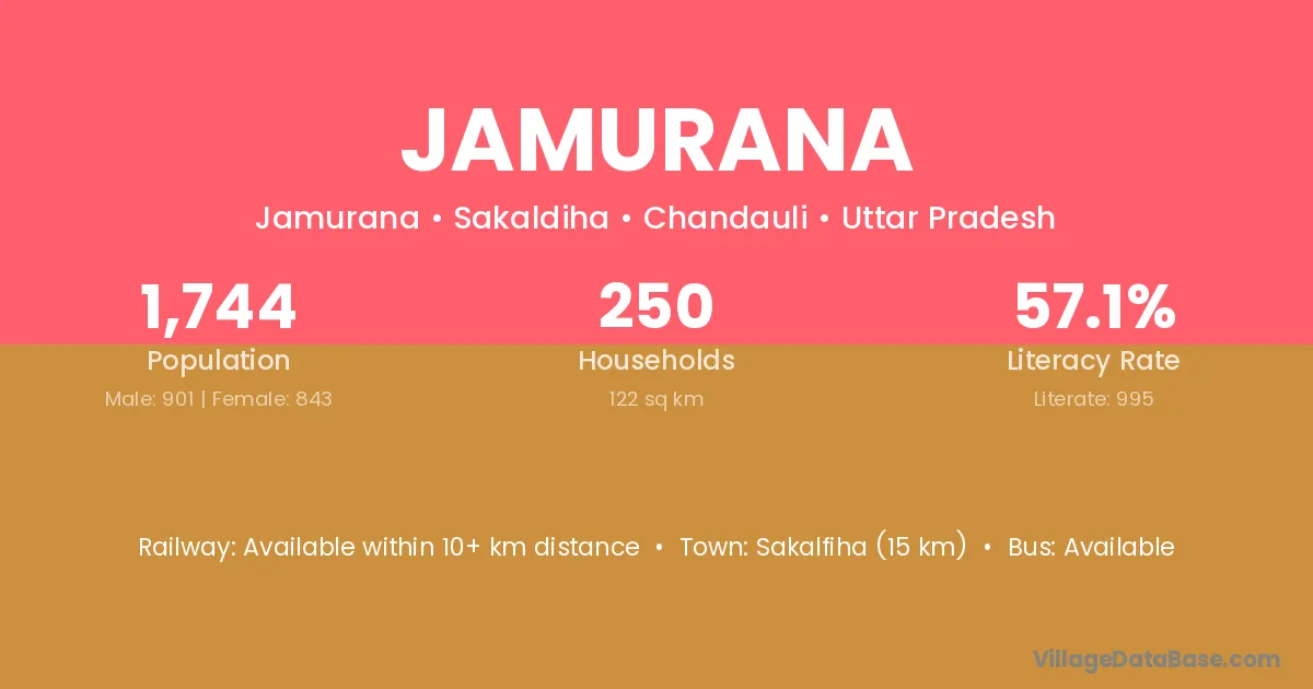 Jamurana village has a total population of 1,744 people, of which 901 are males and 843 are females.