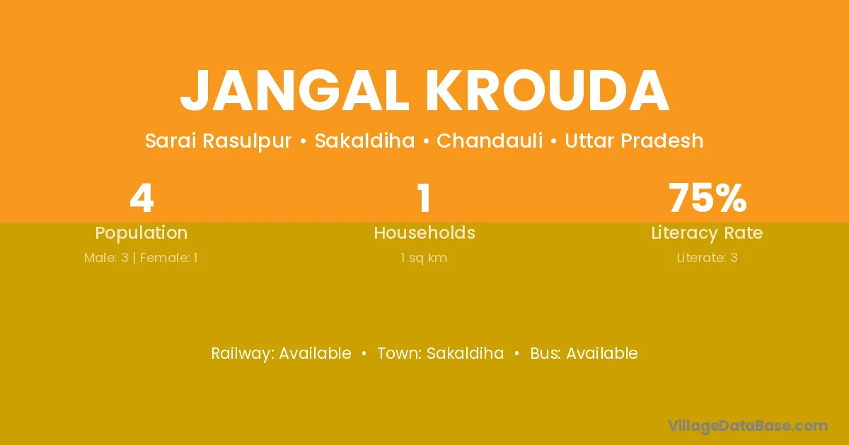 Jangal Krouda village has a total population of 4 people, of which 3 are males and 1 are females.