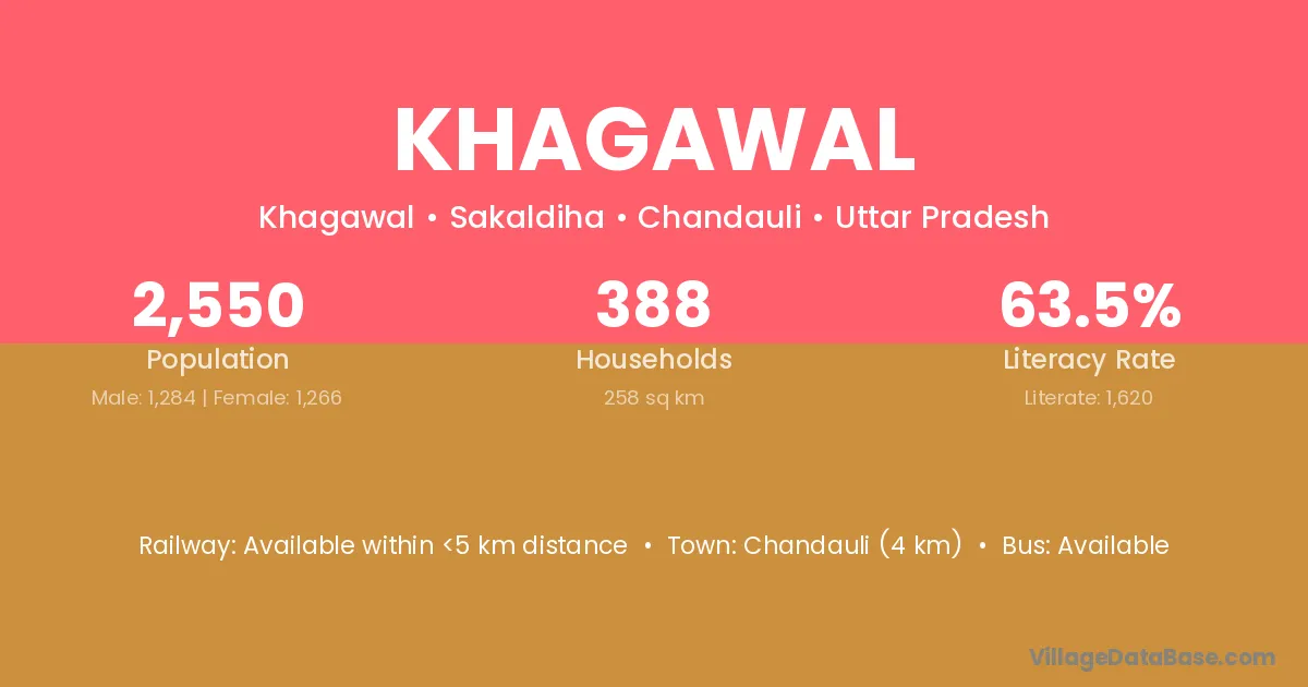 Khagawal village has a total population of 2,550 people, of which 1,284 are males and 1,266 are females.