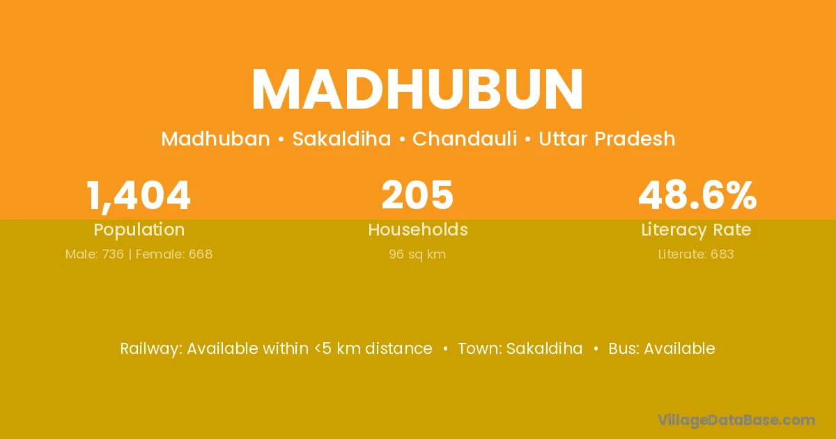 Sakaldiha is the nearest town to Madhubun village for major economic activities