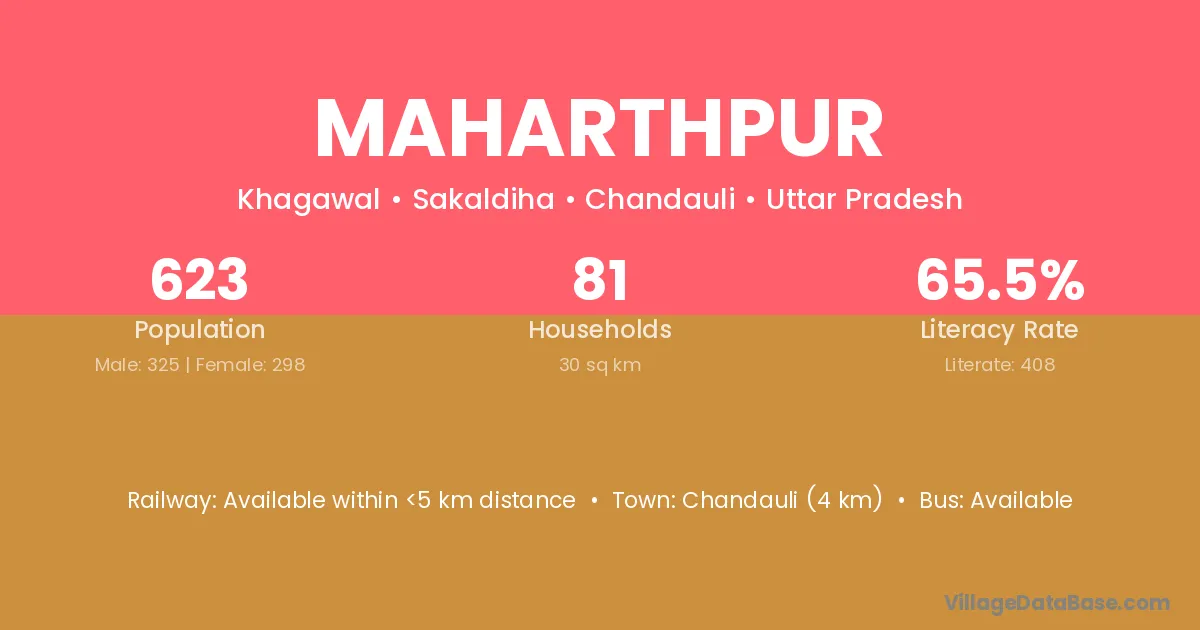 Chandauli (4 km) is the nearest town to Maharthpur village for major economic activities and is located approximately 4 km away.