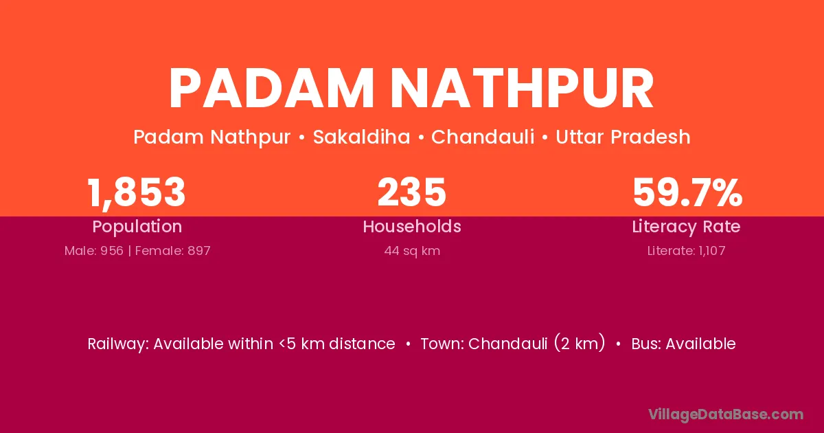 Chandauli (2 km) is the nearest town to Padam Nathpur village for major economic activities and is located approximately 2 km away.