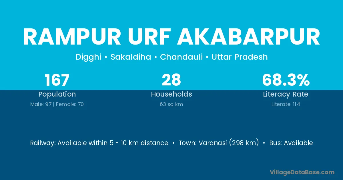 Rampur Urf Akabarpur village has a total population of 167 people, of which 97 are males and 70 are females.