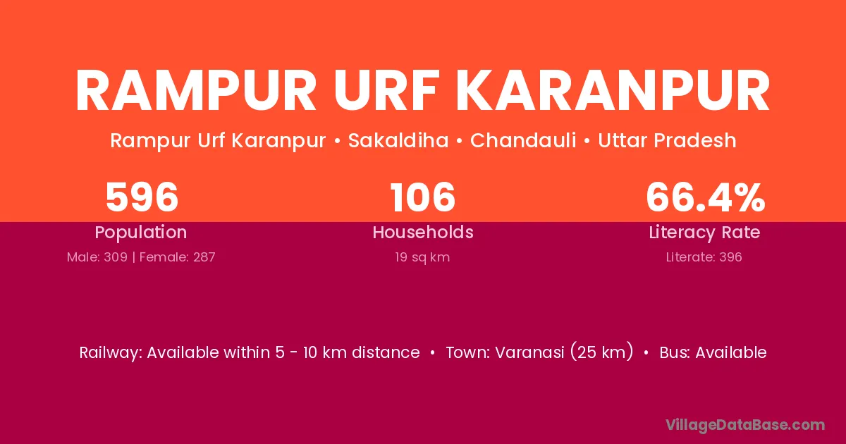 Varanasi (25 km) is the nearest town to Rampur Urf Karanpur village for major economic activities and is located approximately 25 km away.