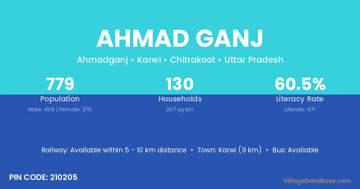 Karwi (9 km) is the nearest town to Ahmad Ganj village for major economic activities and is located approximately 9 km away.