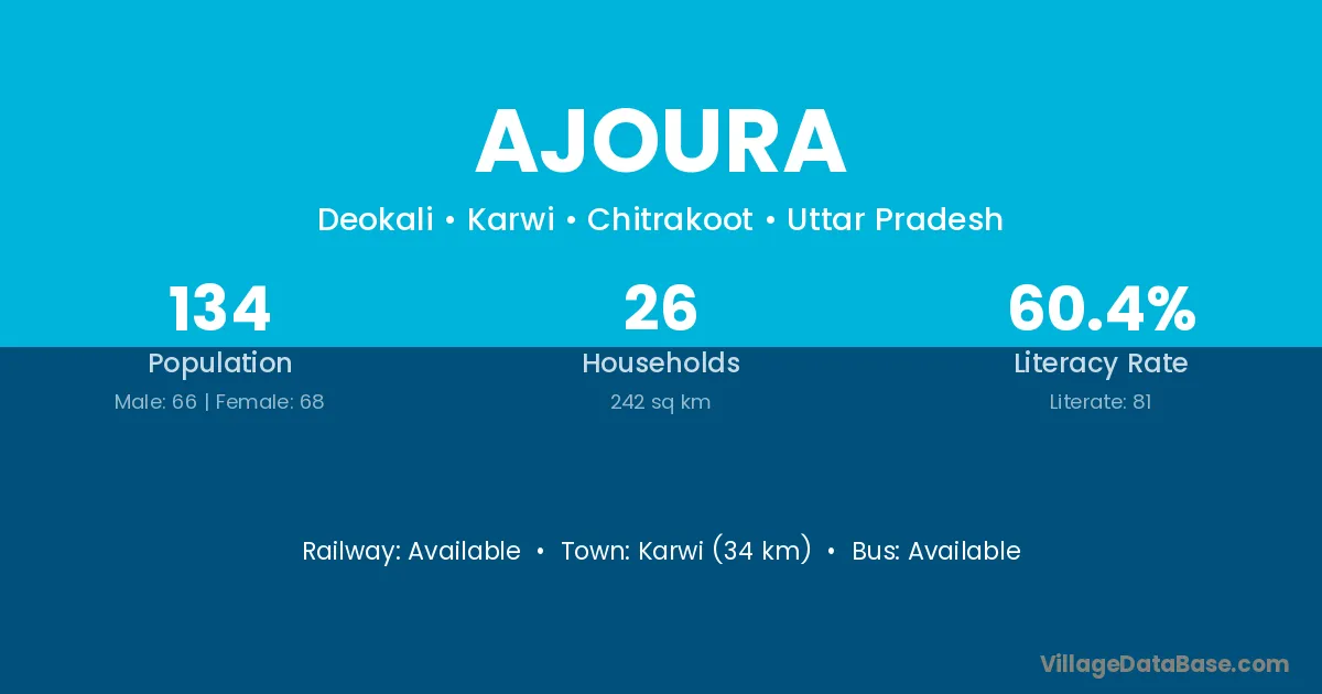 Karwi (34 km) is the nearest town to Ajoura village for major economic activities and is located approximately 34 km away.