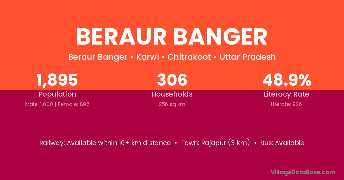 Rajapur (3 km) is the nearest town to Beraur Banger village for major economic activities and is located approximately 3 km away.