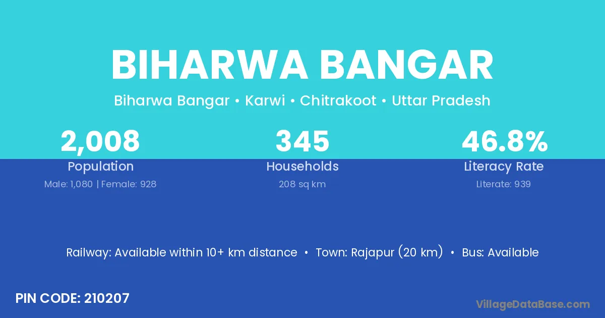 Rajapur (20 km) is the nearest town to Biharwa Bangar village for major economic activities and is located approximately 20 km away.
