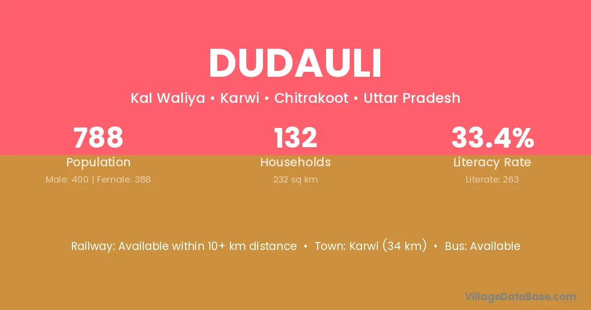 Karwi (34 km) is the nearest town to Dudauli village for major economic activities and is located approximately 34 km away.