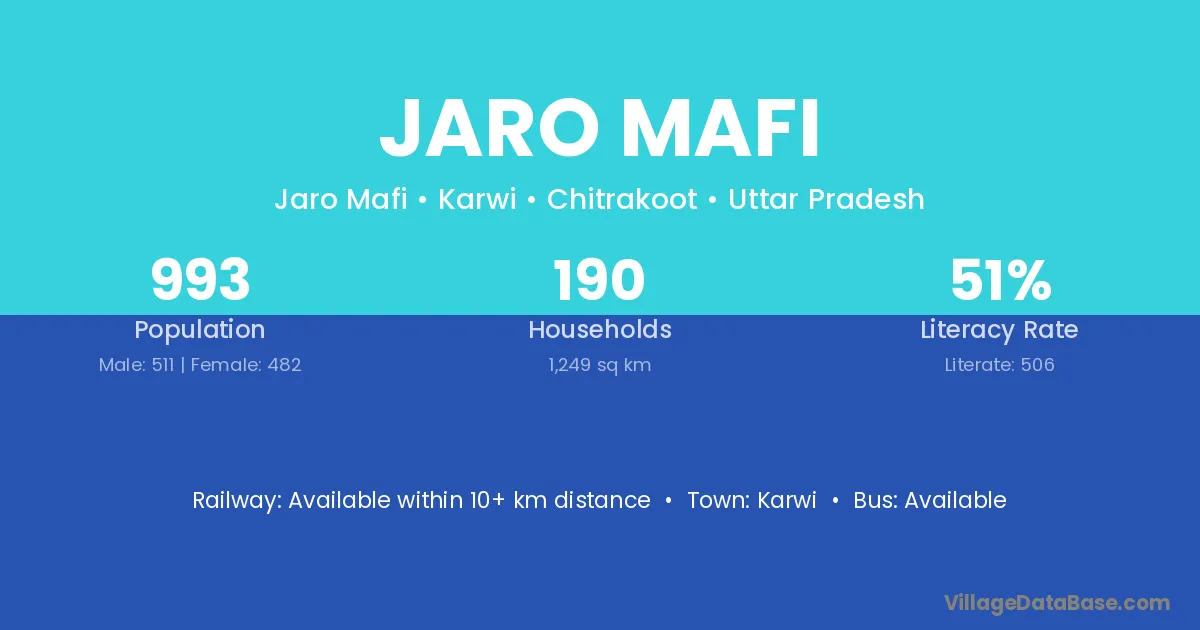 Jaro Mafi village has a total population of 993 people, of which 511 are males and 482 are females.