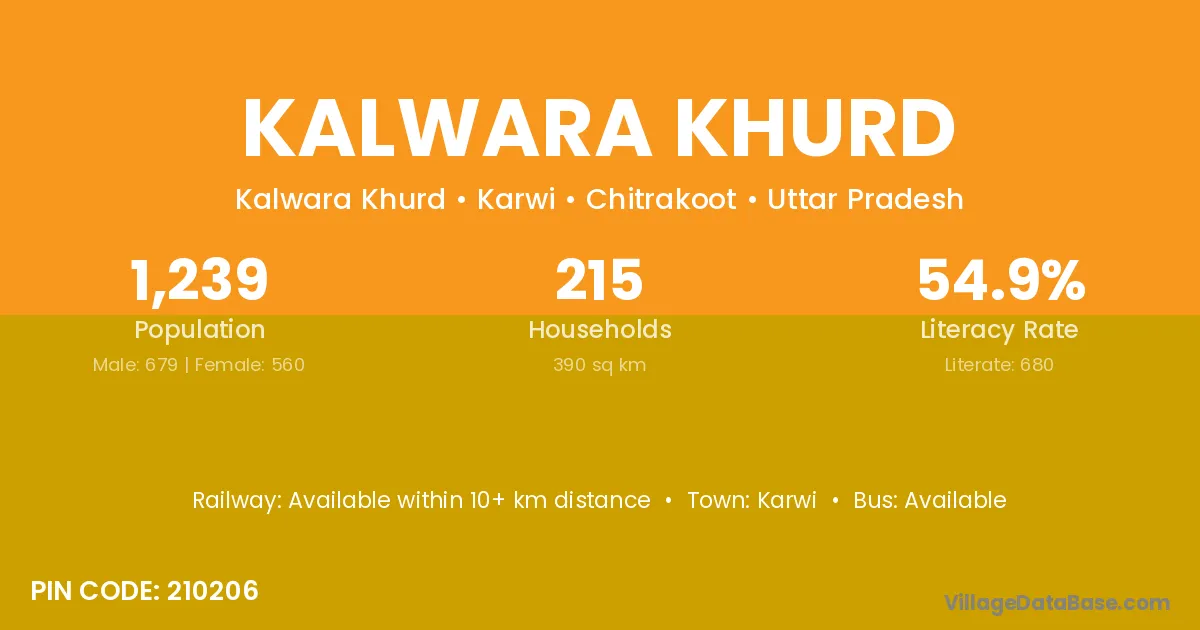 Kalwara Khurd village has a total population of 1,239 people, of which 679 are males and 560 are females.