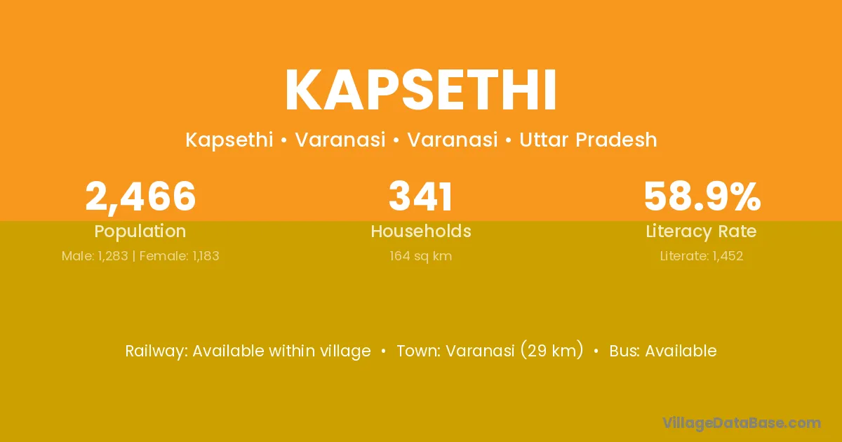 The literacy rate of Kapsethi village is 44.17%. Male literacy stands at 55.97% and female literacy at 31.51%.