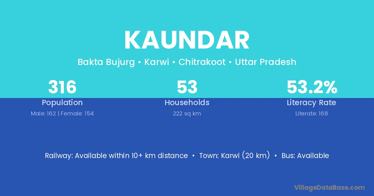 Karwi (20 km) is the nearest town to Kaundar village for major economic activities and is located approximately 20 km away.