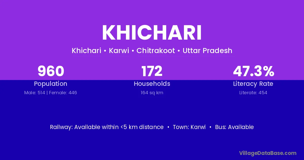 Khichari village has a total population of 960 people, of which 514 are males and 446 are females.