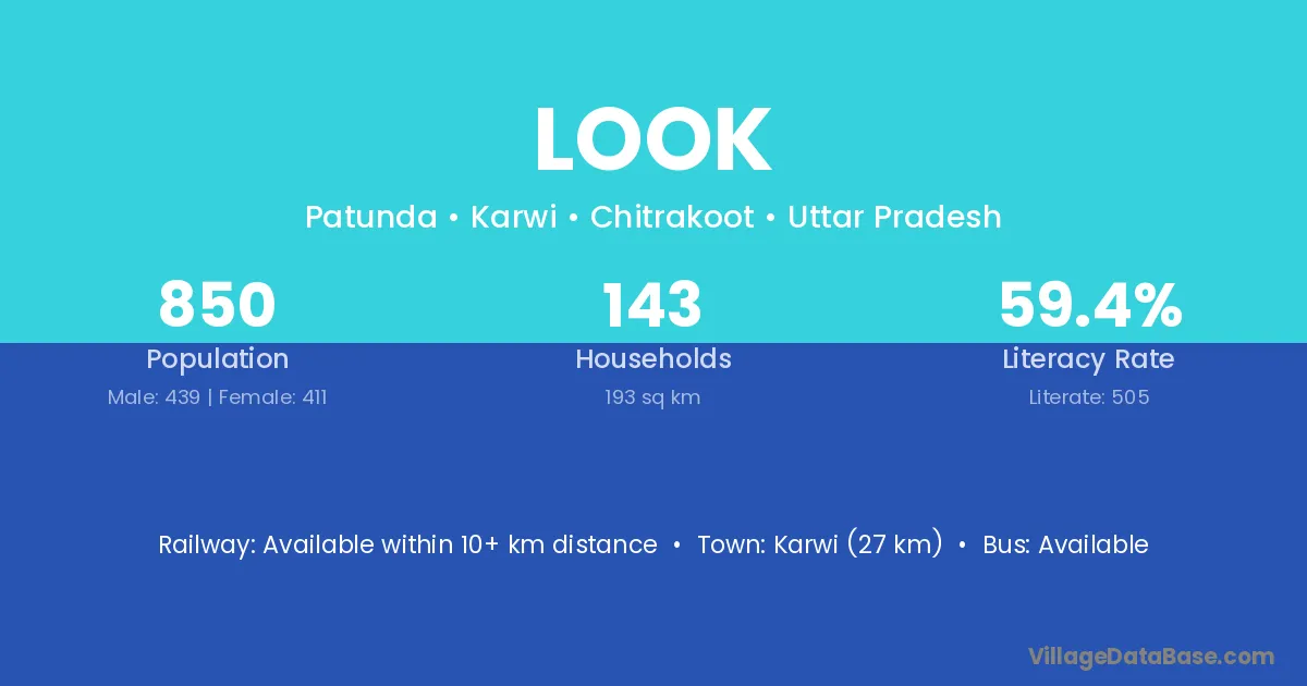 Look village has a total population of 850 people, of which 439 are males and 411 are females.