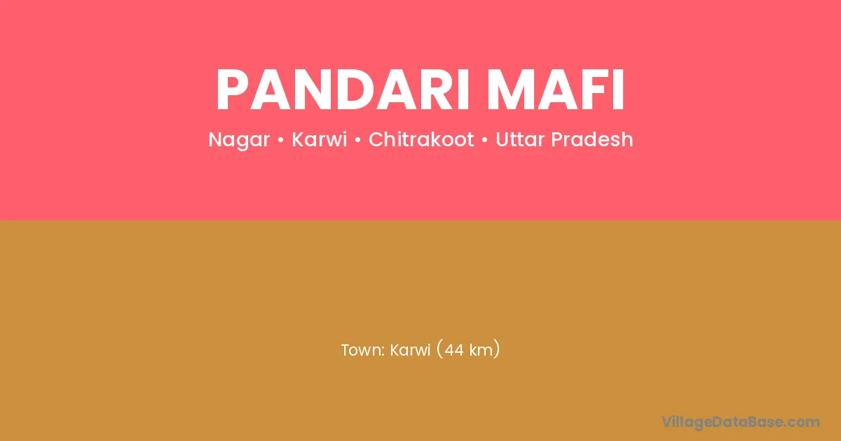 Karwi (44 km) is the nearest town to Pandari Mafi village for major economic activities and is located approximately 44 km away.