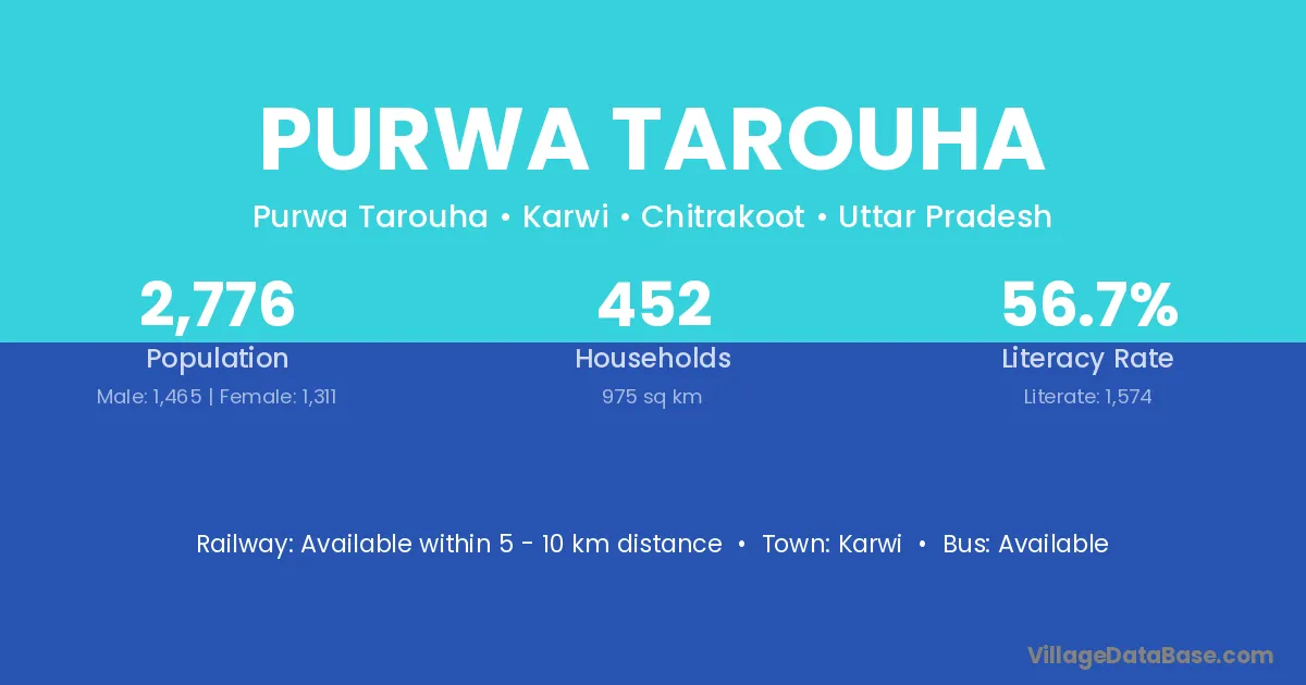 Karwi is the nearest town to Purwa Tarouha village for major economic activities