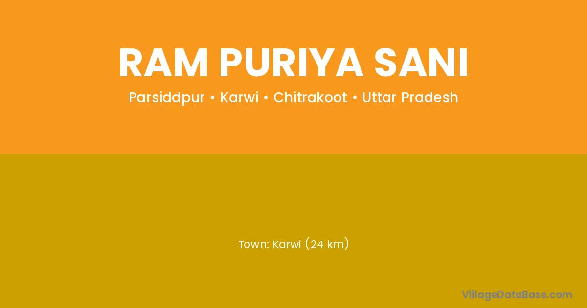 Karwi (24 km) is the nearest town to Ram Puriya Sani village for major economic activities and is located approximately 24 km away.