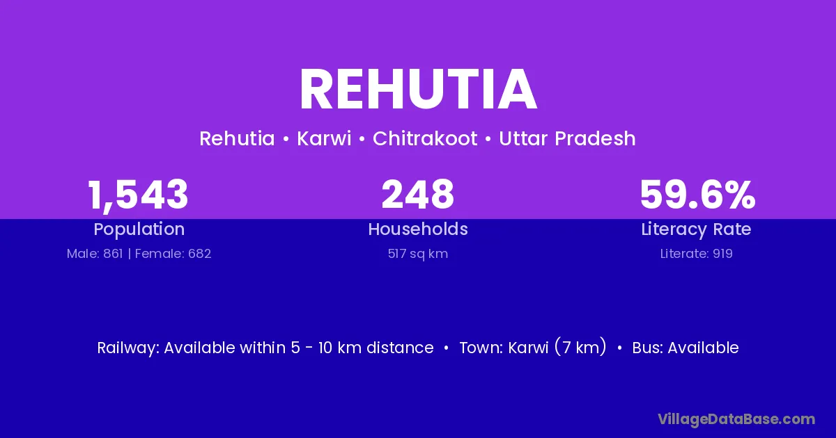 Karwi (7 km) is the nearest town to Rehutia village for major economic activities and is located approximately 7 km away.