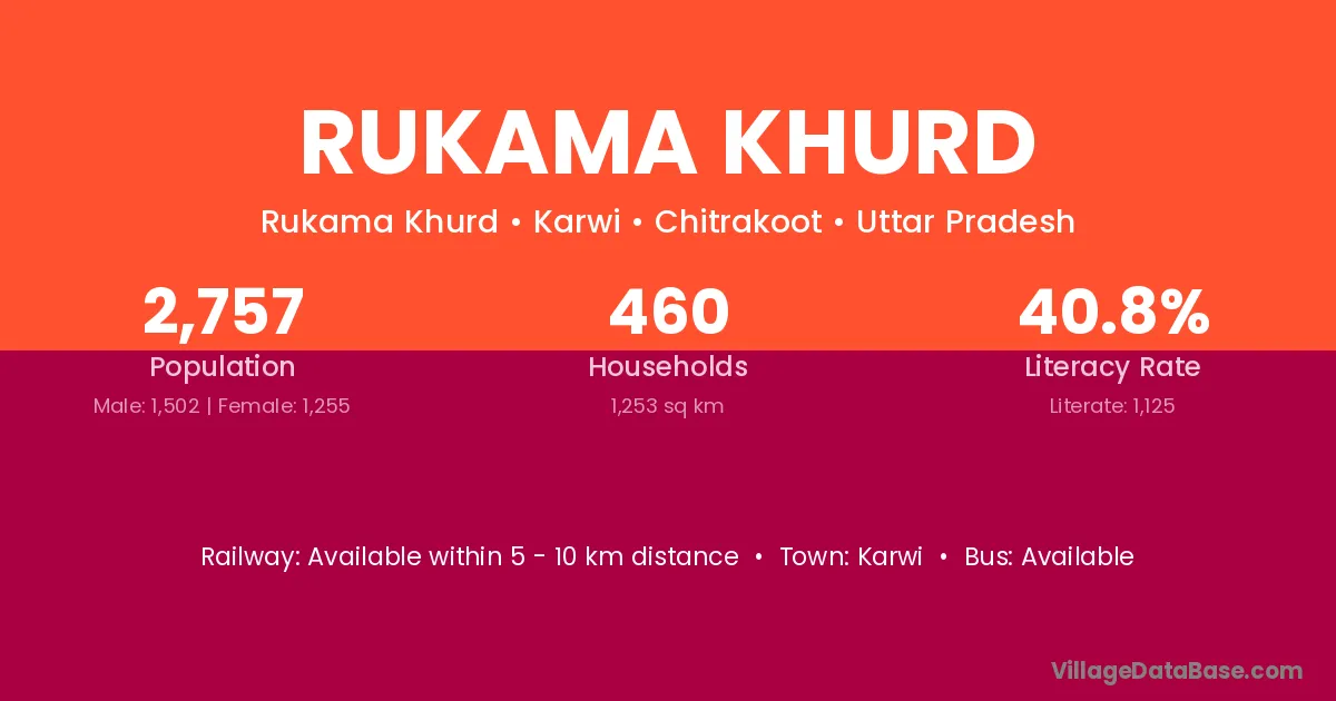 Rukama Khurd village has a total population of 2,757 people, of which 1,502 are males and 1,255 are females.