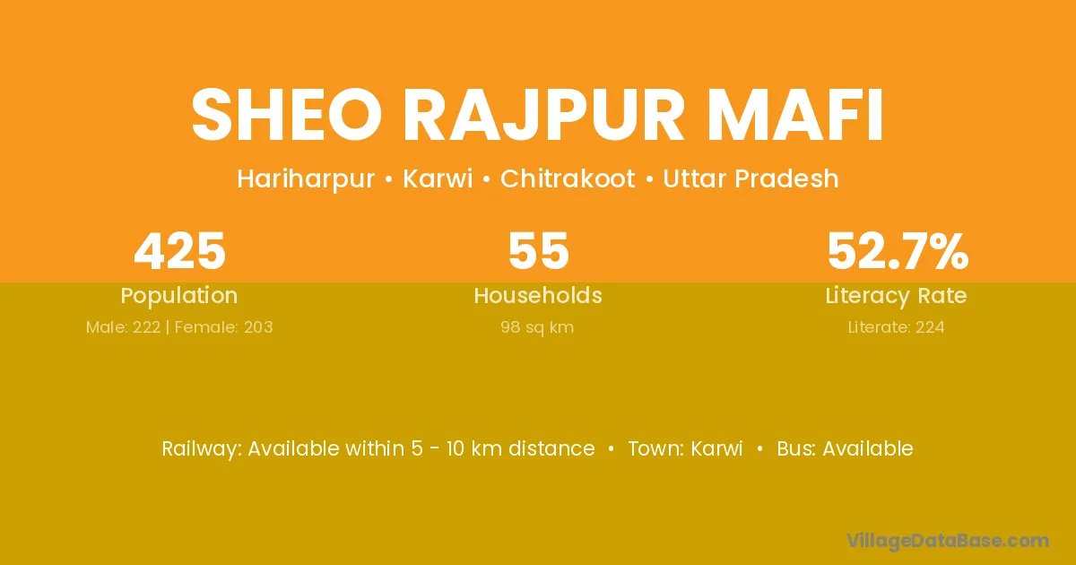 Sheo Rajpur Mafi village has a total population of 425 people, of which 222 are males and 203 are females.