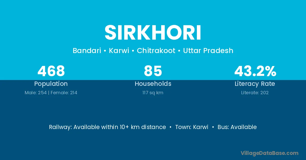 Karwi is the nearest town to Sirkhori village for major economic activities