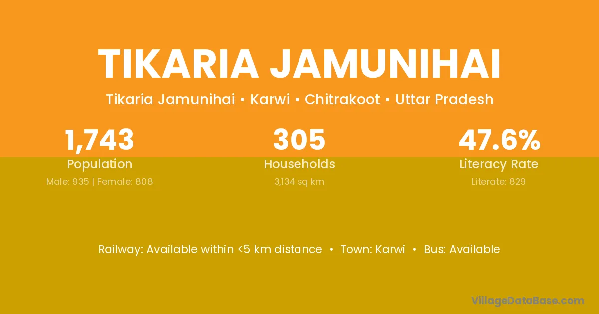 Karwi is the nearest town to Tikaria Jamunihai village for major economic activities