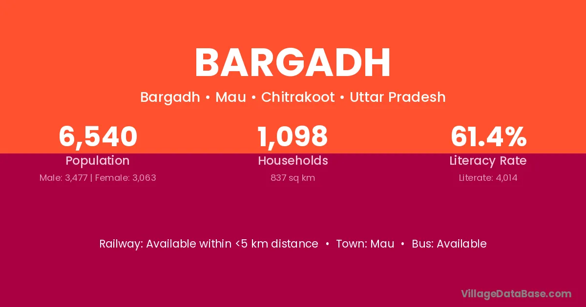 Bargadh village has a total population of 6,540 people, of which 3,477 are males and 3,063 are females.