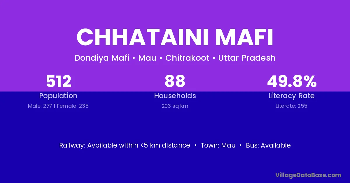 Chhataini Mafi village has a total population of 512 people, of which 277 are males and 235 are females.