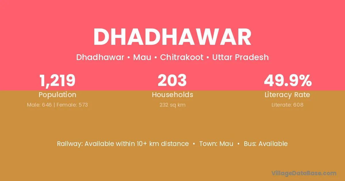 Dhadhawar village has a total population of 1,219 people, of which 646 are males and 573 are females.