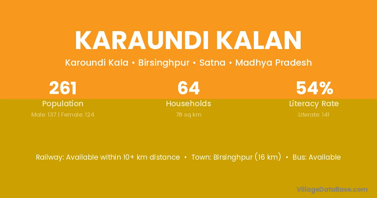 Karvi (31 km) is the nearest town to Karaundi Kalan village for major economic activities and is located approximately 31 km away.