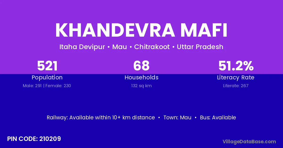 Khandevra Mafi village has a total population of 521 people, of which 291 are males and 230 are females.