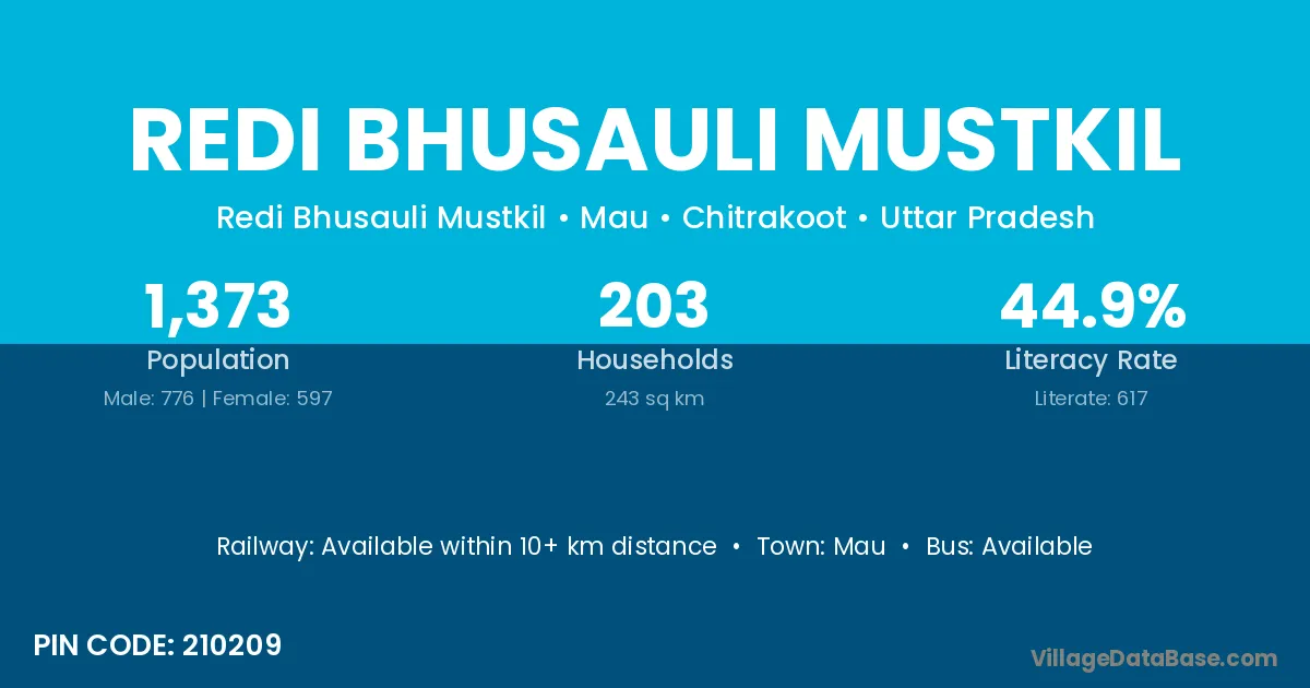 Redi Bhusauli Mustkil village has a total population of 1,373 people, of which 776 are males and 597 are females.