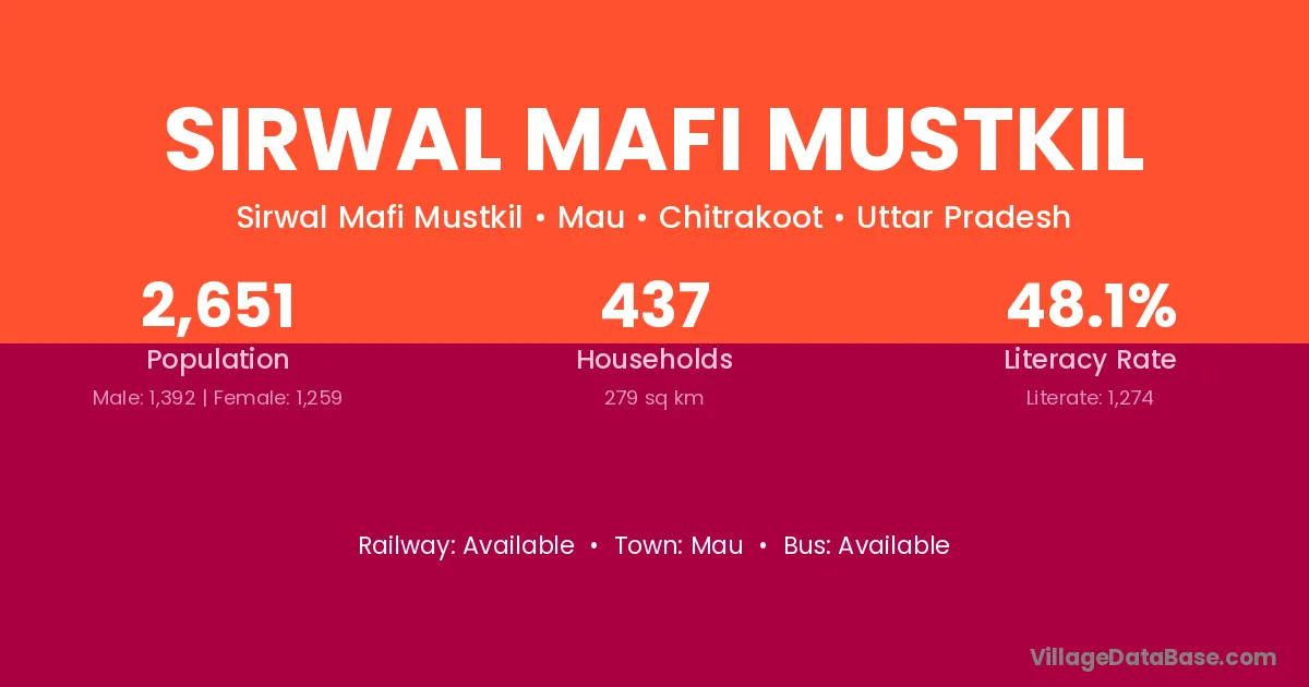 Sirwal Mafi Mustkil village has a total population of 2,651 people, of which 1,392 are males and 1,259 are females.