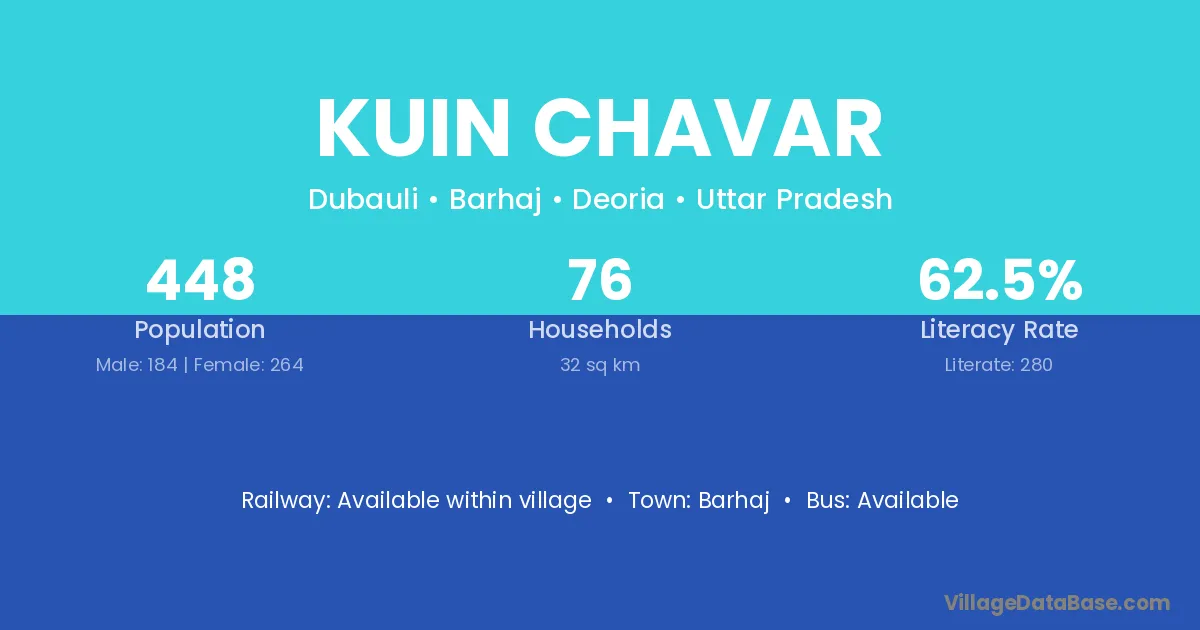 Barhaj is the nearest town to Kuin Chavar village for major economic activities