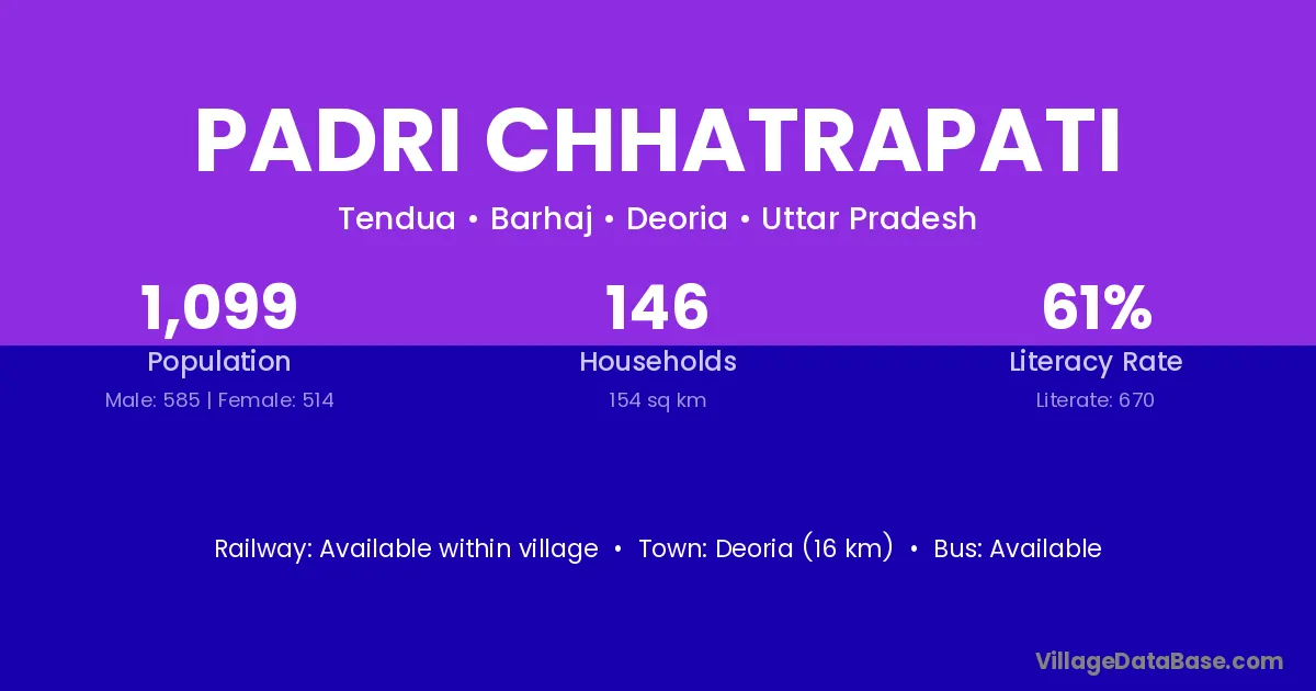 Deoria (16 km) is the nearest town to Padri Chhatrapati village for major economic activities and is located approximately 16 km away.