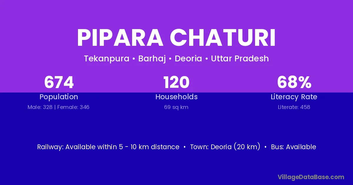 Pipara Chaturi village has a total population of 674 people, of which 328 are males and 346 are females.
