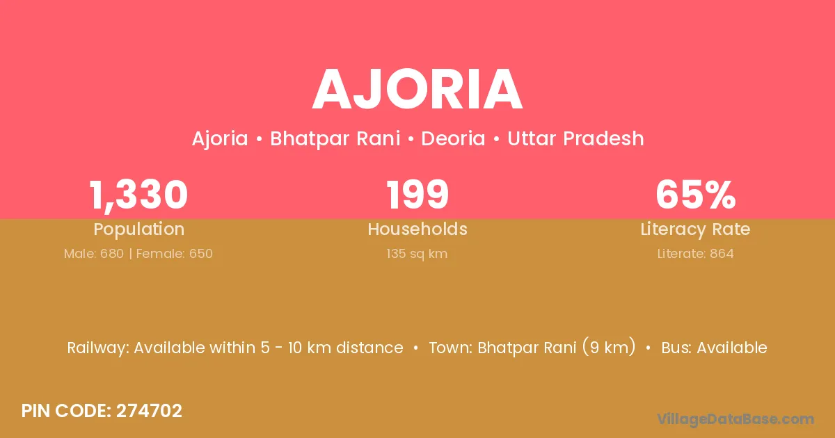 Ajoria village has a total population of 1,330 people, of which 680 are males and 650 are females.