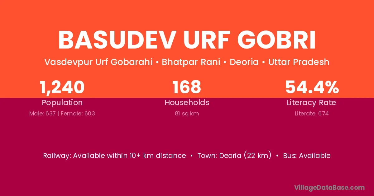 Deoria (22 km) is the nearest town to Basudev Urf Gobri village for major economic activities and is located approximately 22 km away.