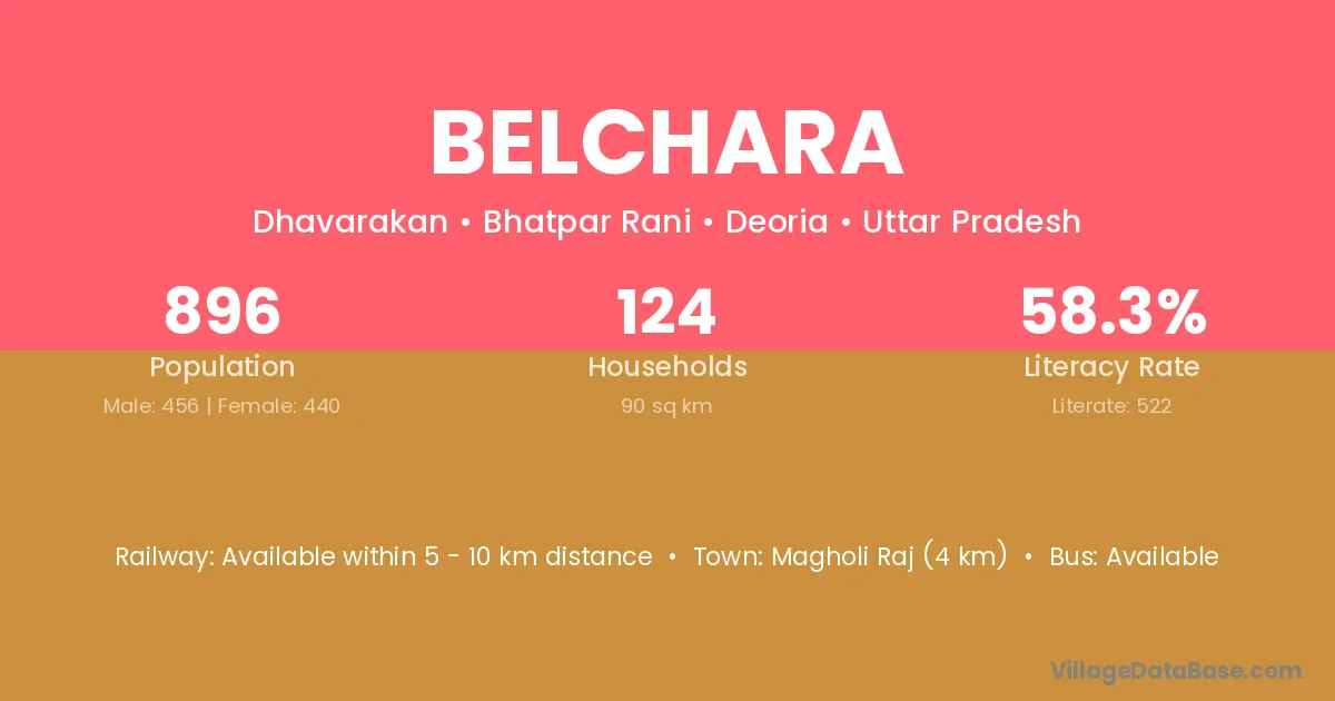 Magholi Raj (4 km) is the nearest town to Belchara village for major economic activities and is located approximately 4 km away.