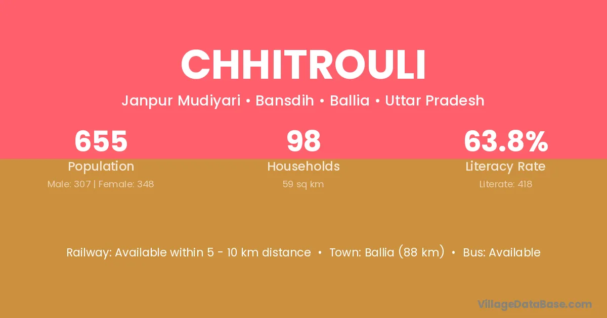 The literacy rate of Chhitrouli village is 58.85%. Male literacy stands at 71.75% and female literacy at 47.26%.