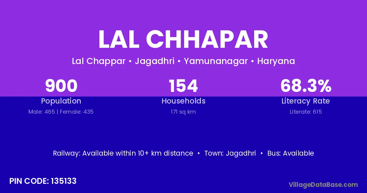 The literacy rate of Lal Chhapar village is 53.73%. Male literacy stands at 71.56% and female literacy at 32.61%.