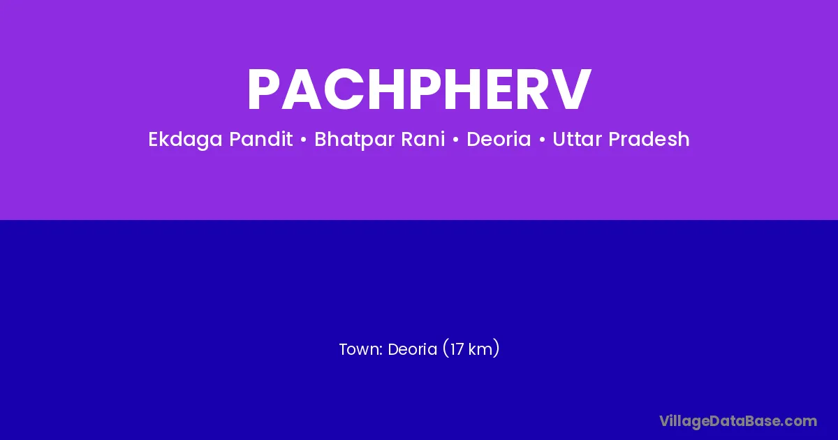 Deoria (17 km) is the nearest town to Pachpherv village for major economic activities and is located approximately 17 km away.