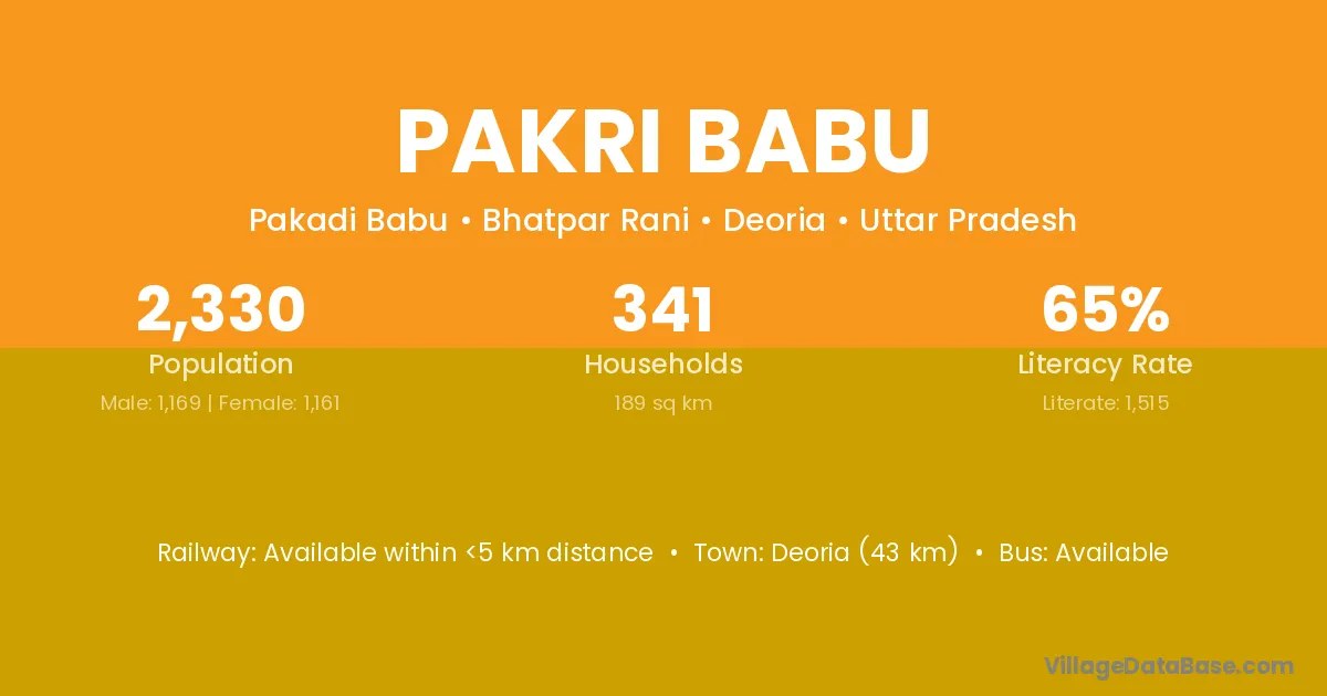 Deoria (43 km) is the nearest town to Pakri Babu village for major economic activities and is located approximately 43 km away.