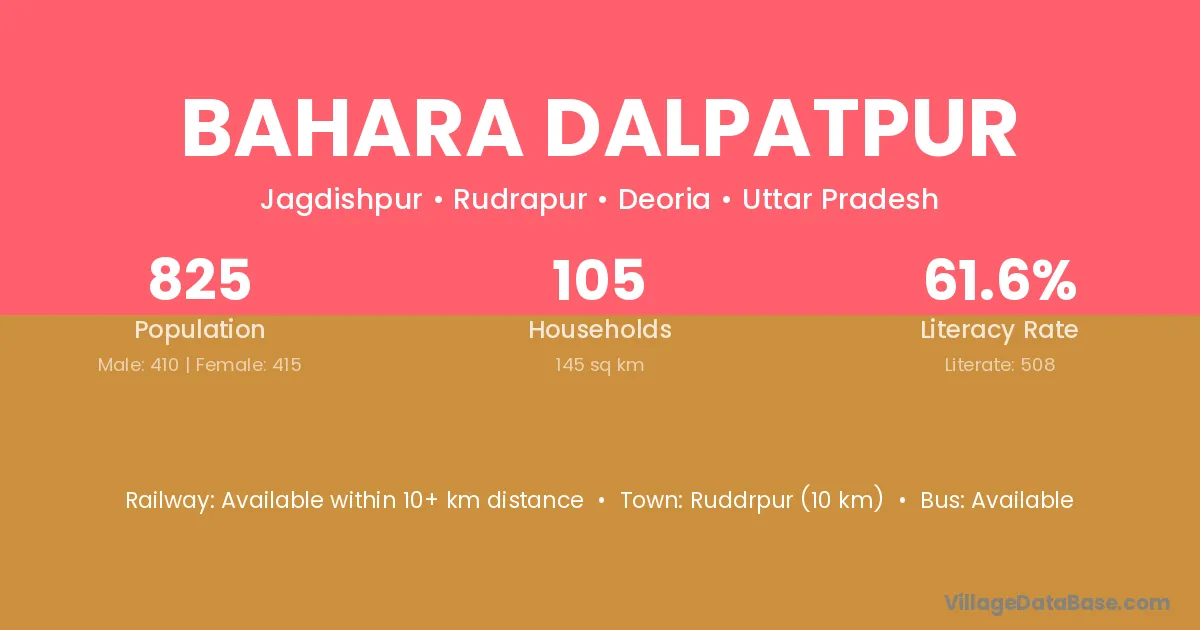 Bahara Dalpatpur village has a total population of 825 people, of which 410 are males and 415 are females.